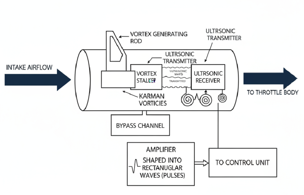 A mass air flow sensor (MAF sensor) measures the amount of air entering the engine to determine the correct fuel injection volume.